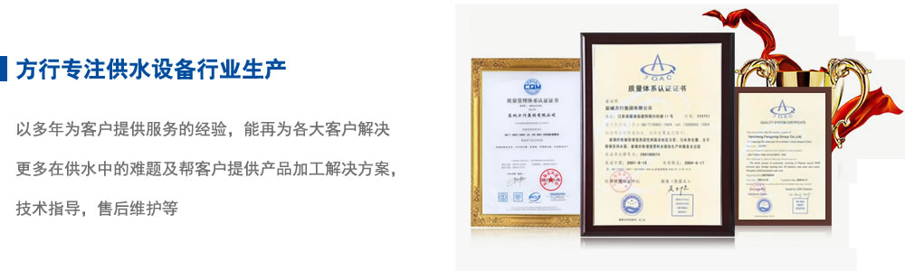 鹽城方行集團(tuán)有限公司創(chuàng)建于一九七七年,四十多年來,在各級領(lǐng)導(dǎo)、國家行業(yè)協(xié)會和大專院校的大力支持幫助下,現(xiàn)已發(fā)展成為一家集研發(fā)、設(shè)計、生產(chǎn)、銷售、安裝、服務(wù)于一體的給排水設(shè)備企業(yè)。產(chǎn)品優(yōu)良,注重品牌。本公司先后榮獲“明星企業(yè)”、“中國鄉(xiāng)鎮(zhèn)明星企業(yè)”、“中國馳名品牌”等榮譽稱號。“方行”牌玻璃鋼夾砂管道、水箱被江蘇省建設(shè)廳指定為推廣產(chǎn)品;污水處理設(shè)備被專家評定為國家級新產(chǎn)品;方行牌玻璃鋼夾砂管道、玻璃鋼貯罐、一體化預(yù)制泵站、生活、消防箱泵一體化、污水處理設(shè)備、玻璃鋼水箱、不銹鋼水箱等產(chǎn)品先后被評為鹽城市名牌產(chǎn)品,江蘇省優(yōu)質(zhì)產(chǎn)品,江蘇省名牌產(chǎn)品。公司技術(shù)和售后服務(wù)日臻完善。在同行中享有很高的知名度、美譽度。以信為本,廣拓業(yè)務(wù)。本公司始終恪守“持之以恒、誠信為本”的經(jīng)營宗旨,持續(xù)發(fā)揚自強不息,順勢而上,趨利避弊,不斷推動產(chǎn)品發(fā)展,為我國的給排水工業(yè),為我們的民族工業(yè)品牌的發(fā)展而做出自己的貢獻(xiàn)。堅持革新,與時俱進(jìn)。公司一貫跟隨社會的發(fā)展堅持不斷革新、嚴(yán)謹(jǐn)規(guī)劃、精益求精的質(zhì)量方針。公司著重于環(huán)保新技術(shù)及給排水設(shè)備的創(chuàng)新研發(fā),已擁有多項國家專利技術(shù)。